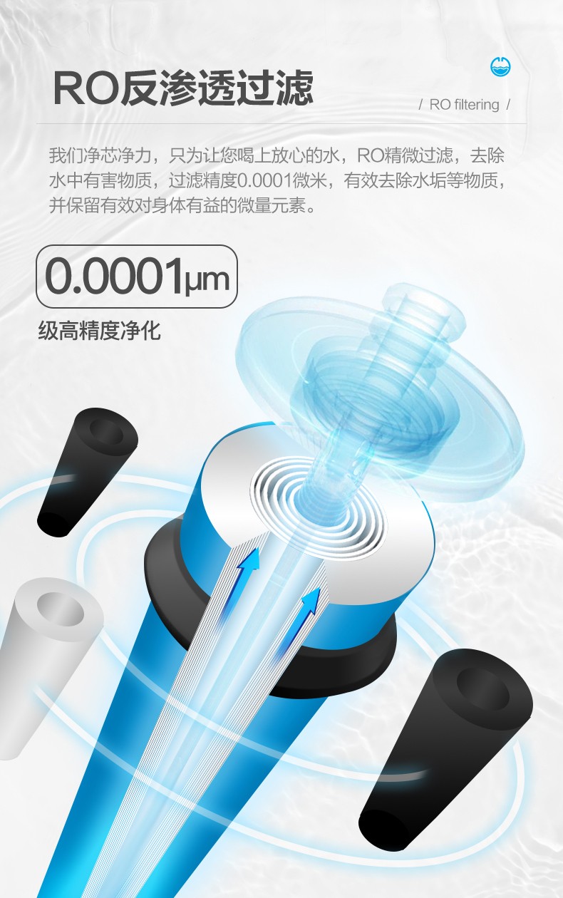 • 凈水方式:RO反滲透(800G,五級(jí)過(guò)濾通用濾芯),配置壓力儲(chǔ)水罐